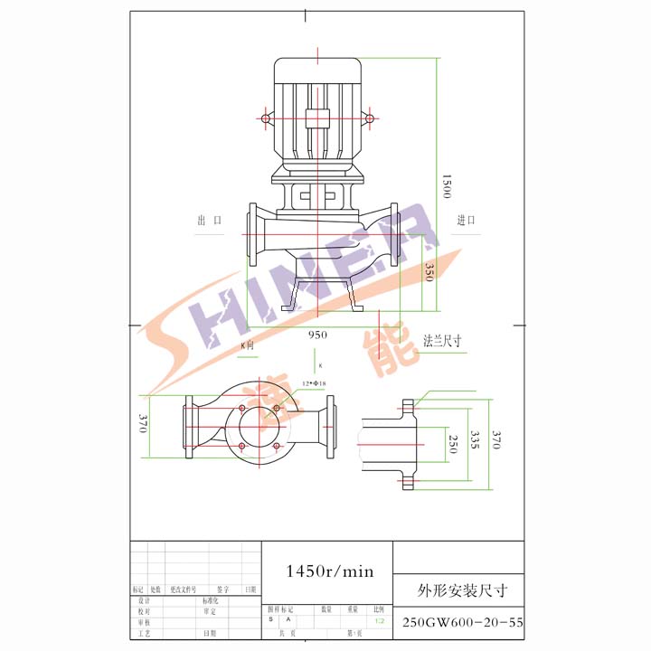 250GW600-20-55大流量排污泵是上海速能旗下一款立式結(jié)構(gòu)的高性能管道排污泵,它采用耐用、耐磨的硬質(zhì)耐磨碳化鎢機(jī)械密封使得其能安全連續(xù)的工作8000小時以上;該產(chǎn)品結(jié)構(gòu)緊湊,泵和電機(jī)直聯(lián)同軸,是機(jī)電一體化產(chǎn)品中的一種,同時它占地面積小,因不需要建造泵房而大大降低工程費用;它能夠便利的安裝和拆卸得益于其進(jìn)出口中心線處在同一水平線上,且進(jìn)出口法蘭規(guī)格一樣;GW型管道排污泵整機(jī)能夠在室外環(huán)境下運行是由于其在設(shè)計時電機(jī)風(fēng)葉末端被套上了防護(hù)罩;該產(chǎn)品采用的大流道抗堵塞樹立部件及配套合適的電機(jī)使得其節(jié)能效果更加明顯、效率更加高、噪聲更加小,且提高了的通污能力可有效的通過直徑為泵口徑約50%的固體顆粒和泵口徑的5倍纖維物質(zhì)。