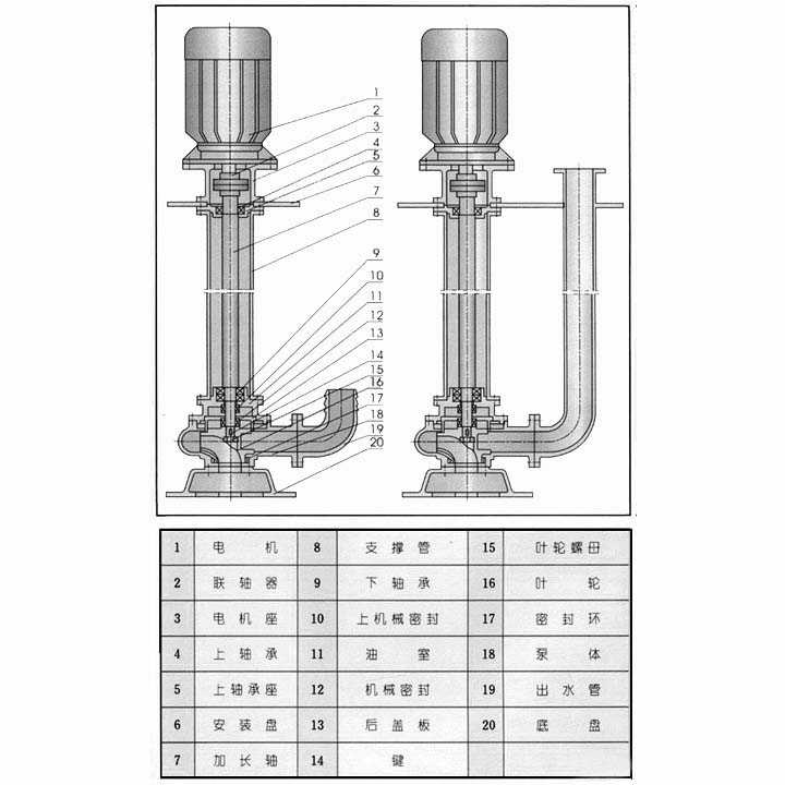 2、YW大流量提升泵可根據(jù)用戶需要配備泵的單(雙)管安裝和支承件的圓(方)盤安裝,可適應(yīng)不同場合的安裝需求。